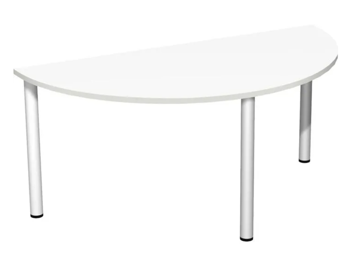 Produktinformationen "Konferenztisch Rundfuß, Halbkreisform, feste Höhe, 1600x800x720, Weiß/Silber"