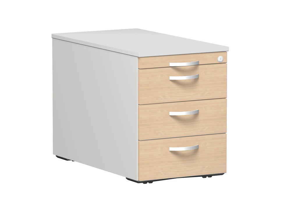 19 mm Dreischicht-Feinspanplatte, mit Melaminharz-Beschichtung, 2 mm ABS-Umleimer, Radius 2 mm gerundet. - Rollcontainer 600 mm Tiefe: