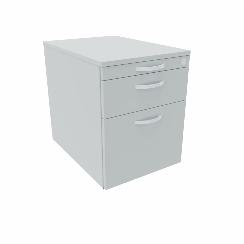 19 mm Dreischicht-Feinspanplatte, mit Melaminharz-Beschichtung, 2 mm ABS-Umleimer, Radius 2 mm gerundet. - Rollcontainer 600 mm Tiefe: