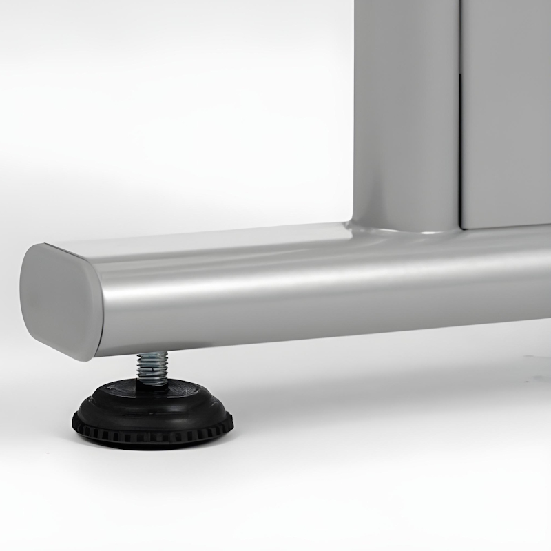 Feste Höhe von 720 mm oder 680-820 mm in einer Rohr-in-Rohr-Führung durch je 2 Inbusschrauben stufenlos höhenverstellbar.