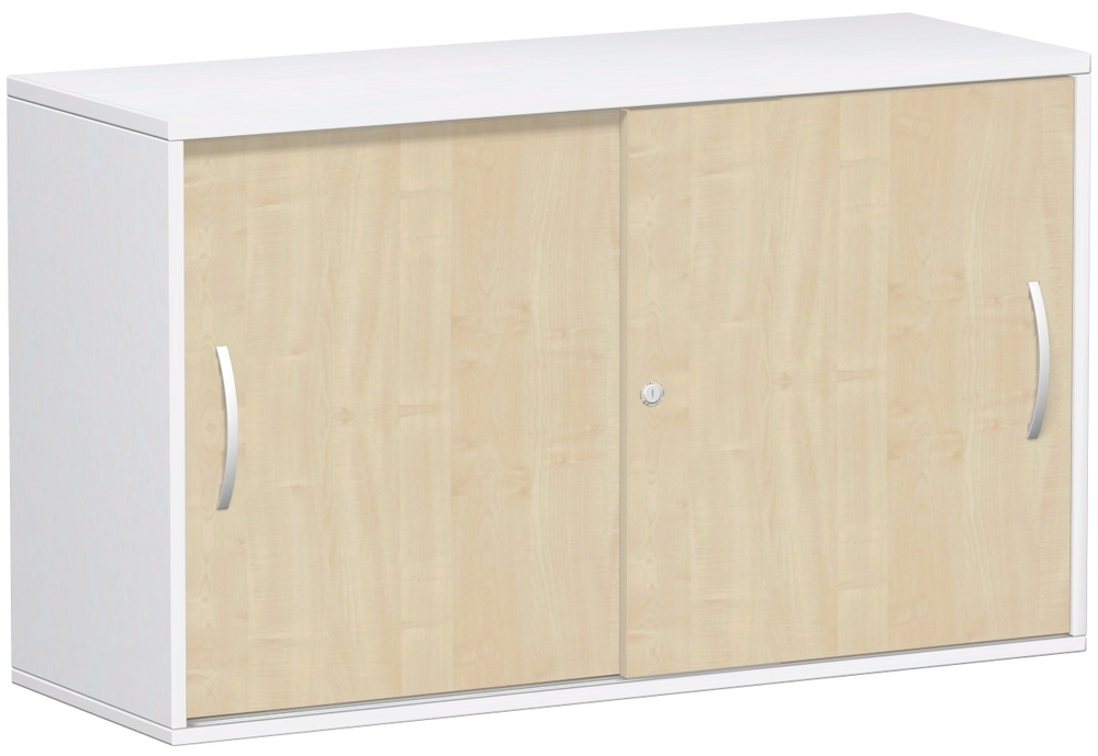 Produktinformationen "Anstell-Schiebetürenschrank Oberboden 25 mm, mit Stellfüßen, abschließbar, 120x42,5x72 cm, Ahorn/Weiß"