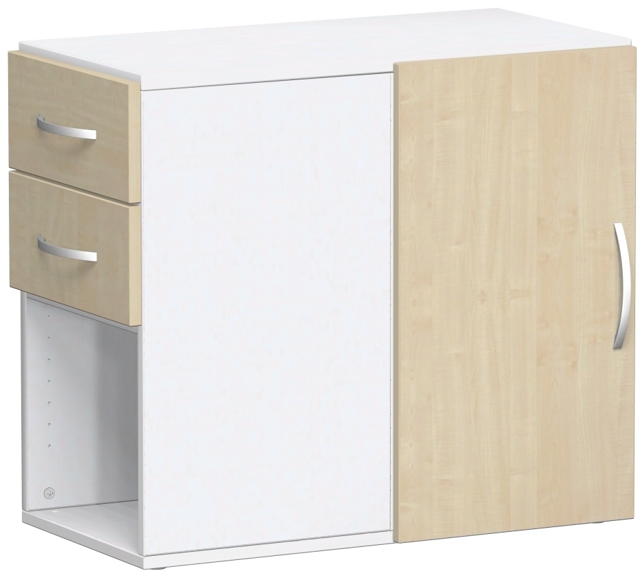 Produktinformationen "Anstell-Schrank mit Schubkästen, Drehtür links o. rechts verwendbar, mit Stellfüßen, nicht abschließbar, Ahorn/Weiß"