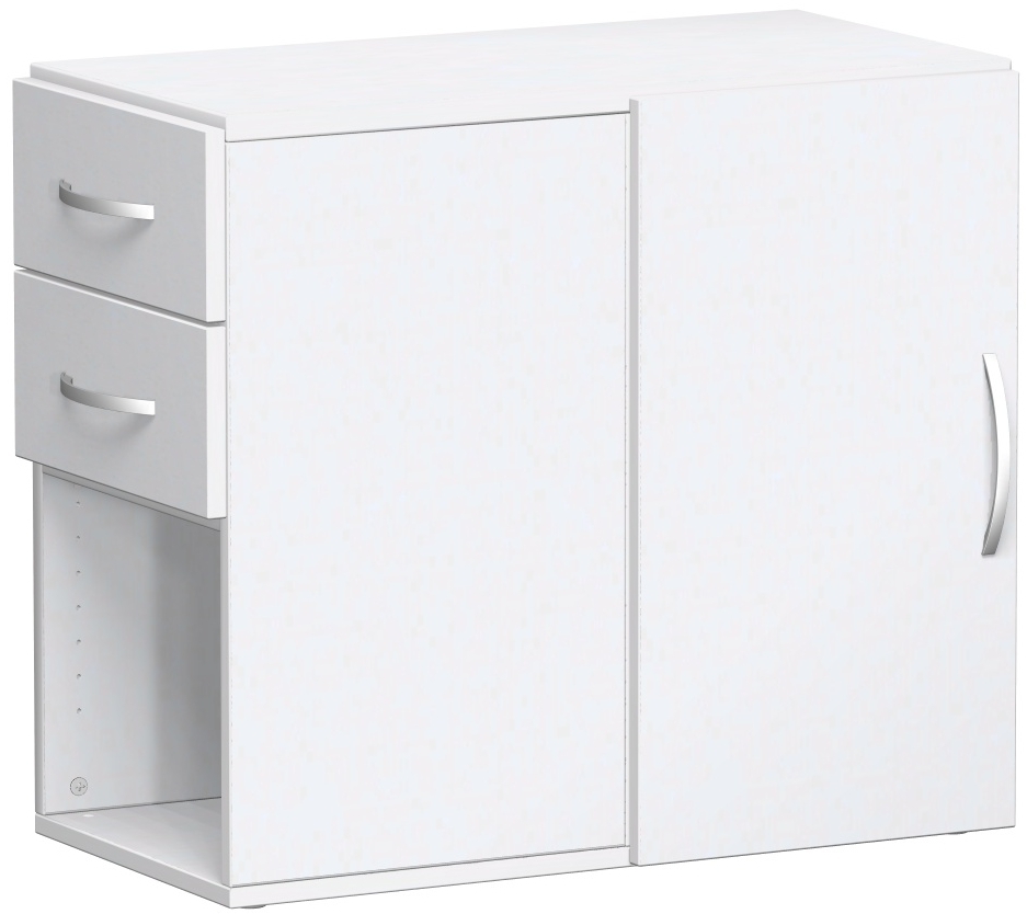 Produktinformationen "Anstell-Schrank mit Schubkästen, Drehtür links o. rechts verwendbar, mit Stellfüßen, nicht abschließbar, Weiß/Weiß"