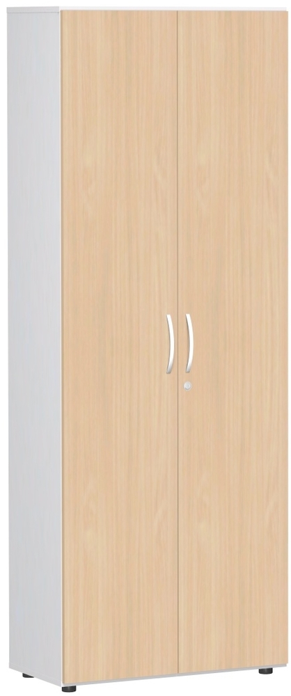Produktinformationen "Flügeltürenschrank mit Standfüßen, abschließbar, inkl. Türdämpfer, Breite 80 cm, 6OH, Buche/Weiß"
