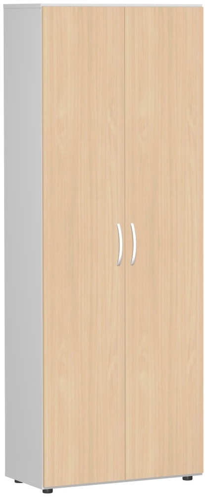 Produktinformationen "Flügeltürenschrank mit Standfüßen, inkl. Türdämpfer, nicht abschließbar, Breite 80 cm, 6OH, Buche/Lichtgrau"