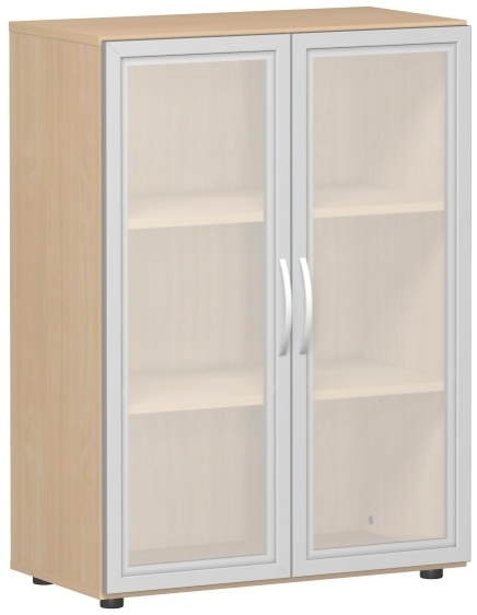 Produktinformationen "Flügeltürenschrank mit satinierten Glastüren im Holzrahmen, mit Standfüßen, nicht abschließbar, Breite 80 cm, 3OH, Buche"