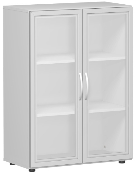 Produktinformationen "Flügeltürenschrank mit satinierten Glastüren im Holzrahmen, mit Standfüßen, nicht abschließbar, Breite 80 cm, 3OH, Lichtgrau"
