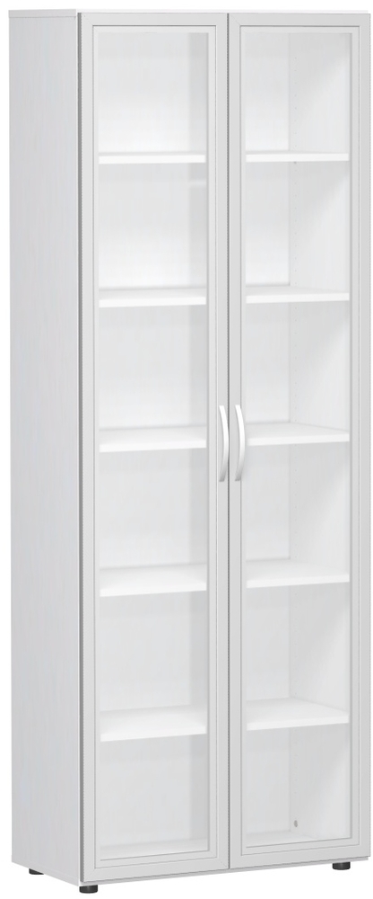 Produktinformationen "Flügeltürenschrank mit satinierten Glastüren im Holzrahmen, mit Standfüßen, nicht abschließbar, Breite 80 cm, 6OH, Weiß"