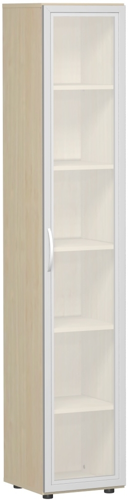 Produktinformationen "Flügeltürenschrank mit satinierter Glastür im Holzrahmen, mit Standfüßen, Griff links oder rechts, nicht abschließbar, 6OH, Ahorn"