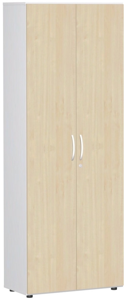 Produktinformationen "Garderobenschrank mit ausziehbarem Garderobenhalter, mit Standfüßen, abschließbar, Breite 80 cm, Ahorn/Weiß"