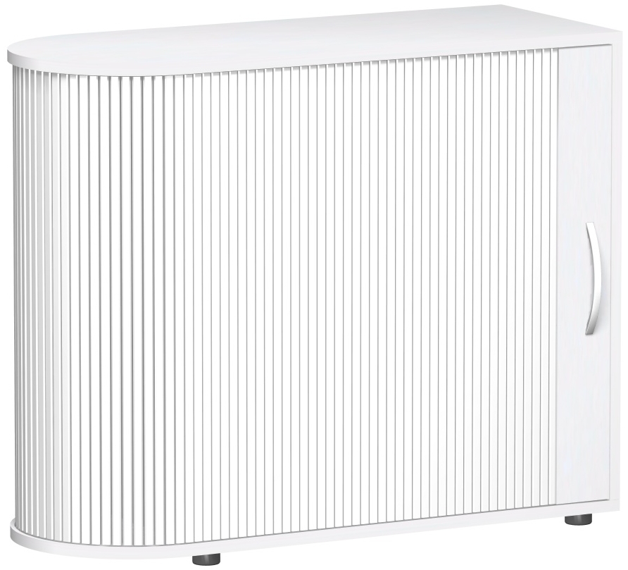 Produktinformationen "Querrollladenschrank abgerundet mit Standfüßen, nicht abschließbar, ohne Sichtrückwand, mehrere Stellmöglichkeiten, 100x40x83 cm, Silber/Weiß"