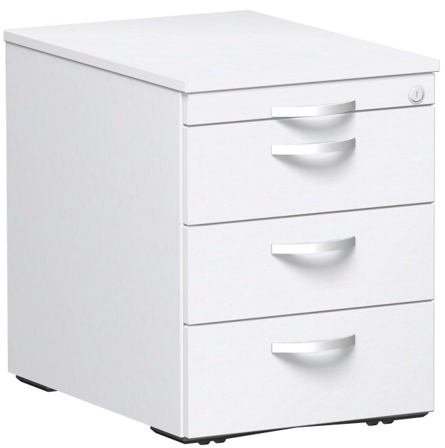 19 mm Dreischicht-Feinspanplatte, mit Melaminharz-Beschichtung, 2 mm ABS-Umleimer, Radius 2 mm gerundet. - Rollcontainer 600 mm Tiefe: