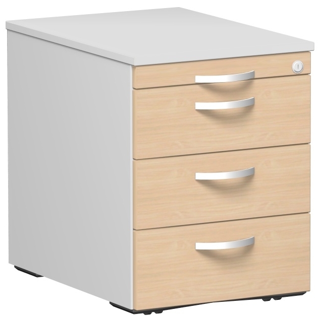19 mm Dreischicht-Feinspanplatte, mit Melaminharz-Beschichtung, 2 mm ABS-Umleimer, Radius 2 mm gerundet. - Rollcontainer 600 mm Tiefe: