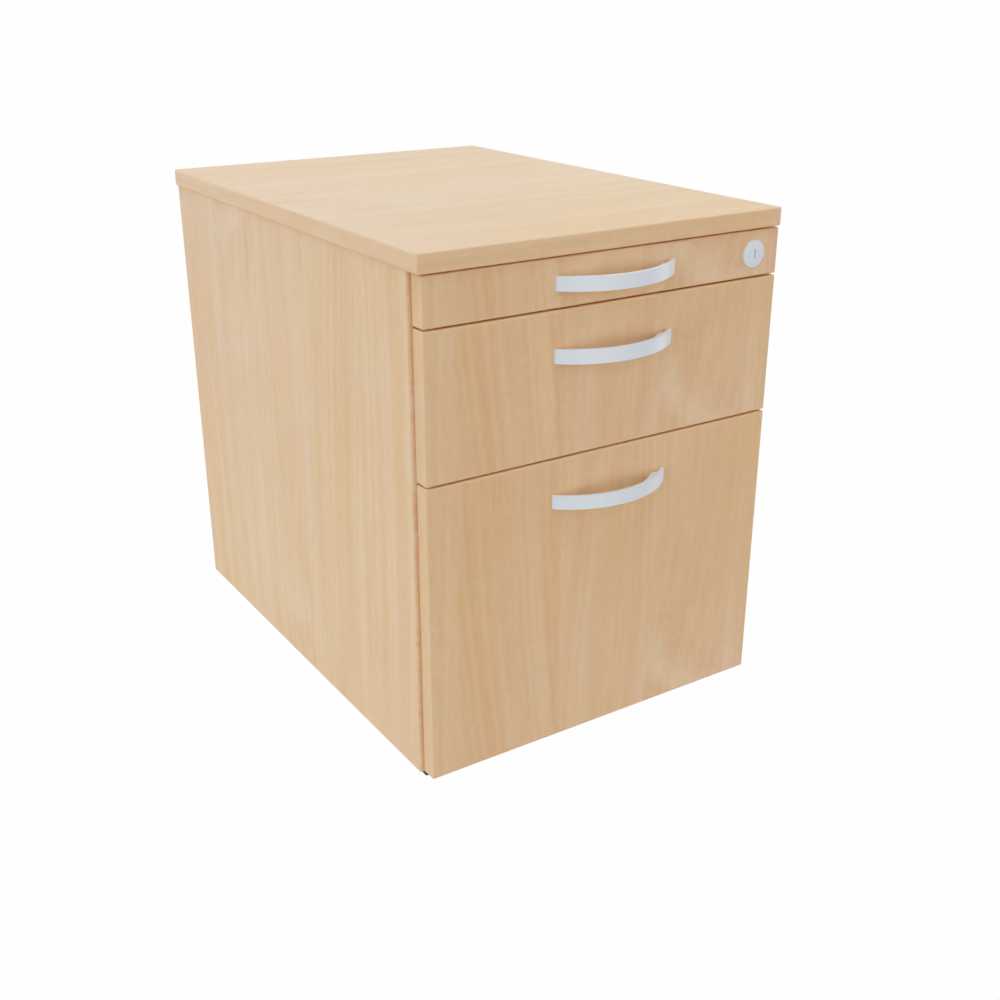 19 mm Dreischicht-Feinspanplatte, mit Melaminharz-Beschichtung, 2 mm ABS-Umleimer, Radius 2 mm gerundet. - Rollcontainer 600 mm Tiefe: