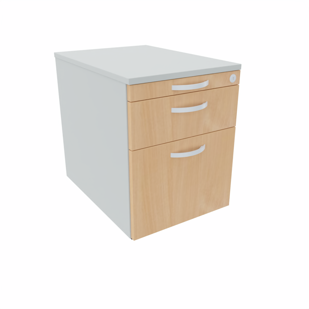 19 mm Dreischicht-Feinspanplatte, mit Melaminharz-Beschichtung, 2 mm ABS-Umleimer, Radius 2 mm gerundet. - Rollcontainer 600 mm Tiefe: