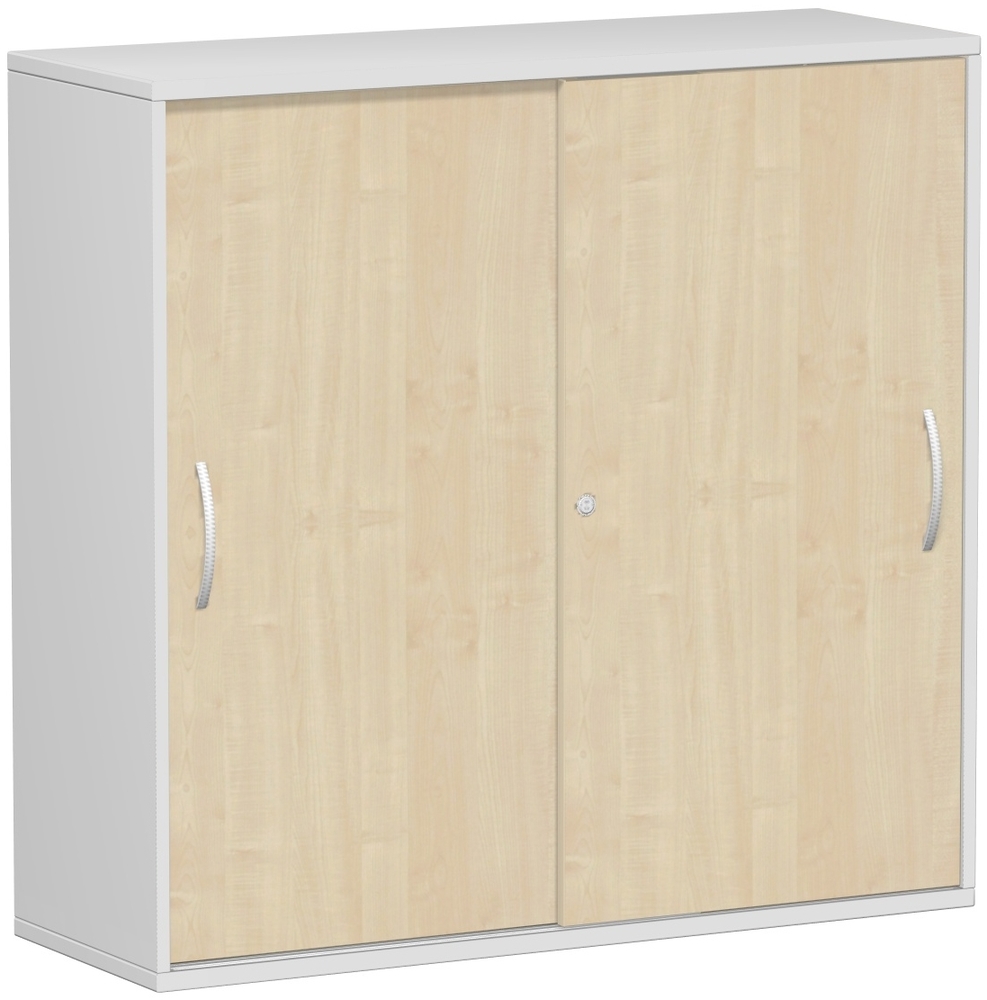 Produktinformationen "Schiebetürenschrank Oberboden 25 mm, mit Standfüßen, abschließbar, 120x42,5x118,2 cm, Ahorn/Lichtgrau"