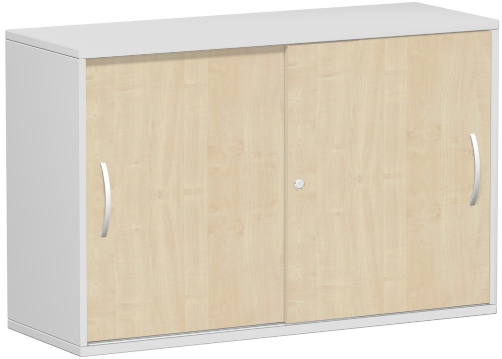 Produktinformationen "Schiebetürenschrank Oberboden 25 mm, mit Standfüßen, abschließbar, 120x42,5x79,8 cm, Ahorn/Lichtgrau"