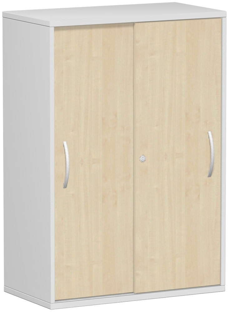 Produktinformationen "Schiebetürenschrank, Oberboden 25 mm, mit Standfüßen, abschließbar, 80x42,5x118,2 cm, Ahorn/Lichtgrau"