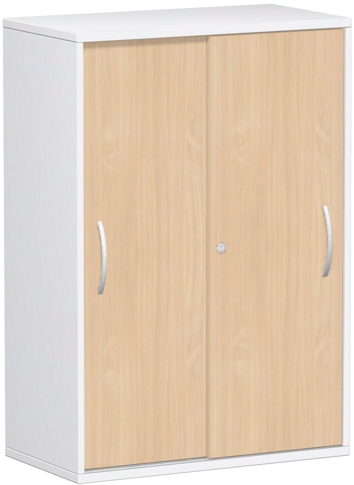 Produktinformationen "Schiebetürenschrank, Oberboden 25 mm, mit Standfüßen, abschließbar, 80x42,5x118,2 cm, Buche/Weiß"