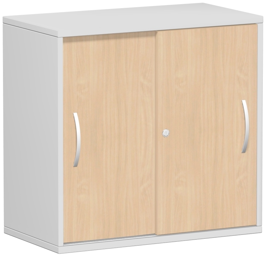 Produktinformationen "Schiebetürenschrank, Oberboden 25 mm, mit Standfüßen, abschließbar, 80x42,5x79,8 cm, Buche/Lichtgrau"
