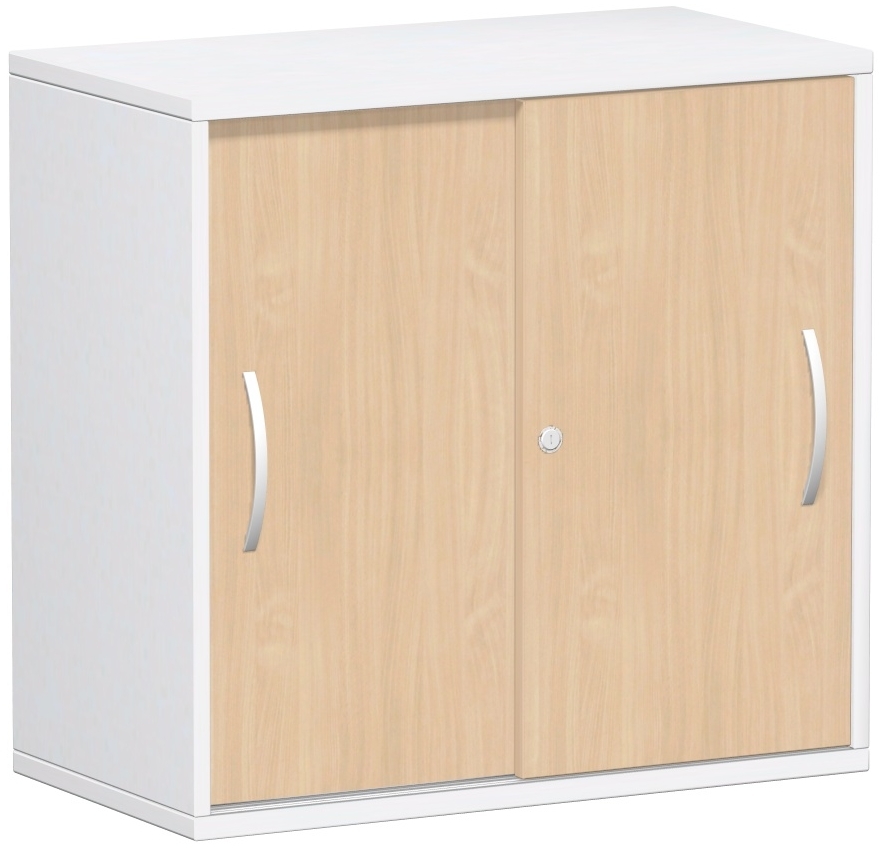 Produktinformationen "Schiebetürenschrank, Oberboden 25 mm, mit Standfüßen, abschließbar, 80x42,5x79,8 cm, Buche/Weiß"