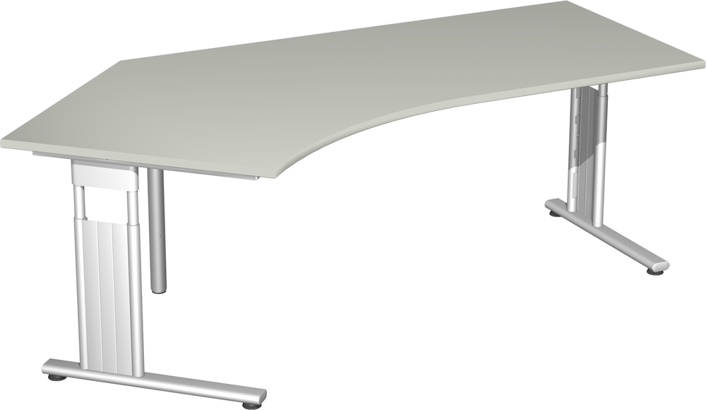 Produktinformationen "Schreibtisch 135°, links, feste Höhe, 2166x1130x720, Lichtgrau/Silber"